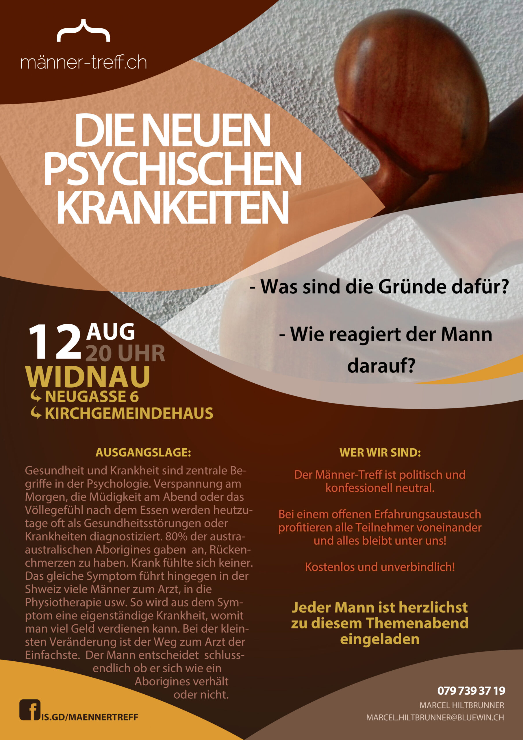 Gesundheit und Krankheit sind zentrale Begriffe in der Psychologie und beschreiben Zustände des körperlichen, geistigen und sozialen Wohlbefindens bzw. dessen Beeinträchtigung. Ihr Verständnis ist wichtig, da psychische, biologische und soziale Faktoren eng miteinander verwoben sind und gemeinsam beeinflussen, wie Menschen gesund bleiben oder krank werden. Gesundheit ist demnach ein Zustand vollkommenen körperlichen, geistigen und sozialen Wohlbefindens und nicht allein das Fehlen von Krankheit und Gebrechen. Verspannung am Morgen, die Müdigkeit am Abend, die schlechte Stimmung aufgrund der Fernsehnachrichten oder das Völlegefühl nach dem Essen werden heutzutage oft als Gesundheitsstörungen oder Krankheiten diagnostiziert, mit der Konsequenz, dass jeder mehrfach am Tag krank ist (!). In einer Befragung von australischen Aborigines gaben 80% an, Rückenschmerzen zu haben. Krank fühlte sich keiner der Befragten. Es bestand ein Symptom ohne Leiden, also keine Krankheit. Das gleiche Symptom (Rückenschmerz) führt hingegen in der Schweiz täglich viele Menschen zum Arzt, in die Physiotherapie, es werden Röntgen- und MRT-Bilder angefertigt, Diagnosen gestellt, Medikamente, Spritzen und Operationen angeboten und durchgeführt. So wird aus dem Symptom eine eigenständige Krankheit mit allen Folgeproblemen, womit man viel Geld verdienen kann. Der männliche Körper mit 50ig ist nicht derselbe wie mit 20ig. Dies zu akzeptieren, damit haben viele Männer Mühe und ignorieren somit, dass der eigenen Körper & Geist sich mit den Jahren abnützt. Stress, Unzufriedenheit, mangelndes Selbstwertgefühl beschleunigen diesen natürlichen, körperlichen Prozess.