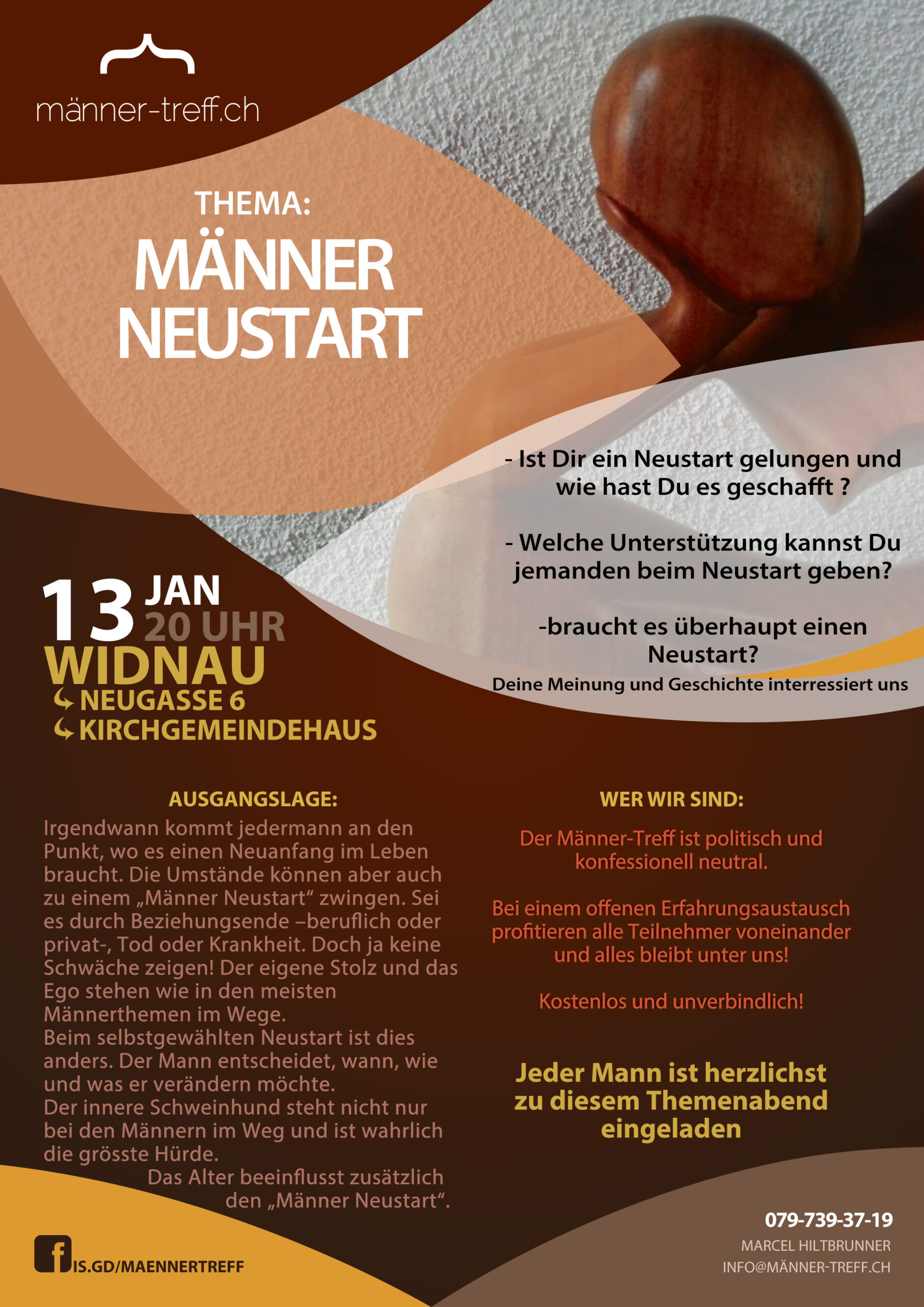 Ein Neuanfang ist eine Veränderung, die das bisherige Leben ganz oder in Teilen auf den Kopf stellt. Ganze Bereiche des Lebens werden umgekrempelt und völlig neu gestaltet. Eine solche Zäsur kann selbst gewollt und bewusst angestrebt sein – aus Unzufriedenheit mit dem, was bisher war. Die Umstände können aber auch zu einem „Männer Neustart“ zwingen. Sei es durch Beziehungsende –beruflich oder privat-, Tod oder Krankheit. In solchen gezwungen Situationen versucht der Mann, sich zu beherrschen und ja keine Schwäche zeigen. Der eigene Stolz und das Ego stehen wie in den meisten Männerthemen im Wege. Unterstützung von aussen annehmen ist für viele Männer ein Tabu, schliesslich hat man sich in jeder Situation im Griff!